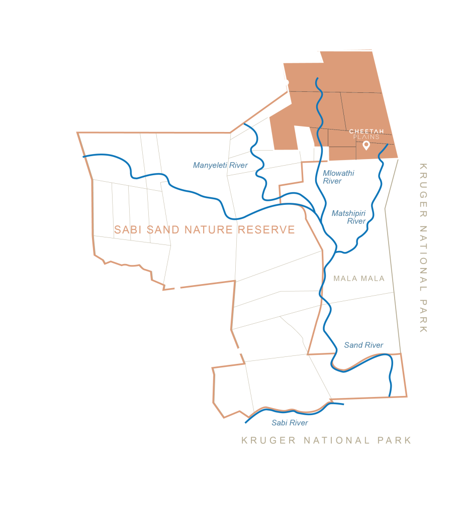 The Sabi Sand Nature Reserve shares a fenceless border to the east with the world famous Kruger National Park and a border with the Mala Mala Game Reserve. Cheetah Plains’ prime location delivers a prolific safari experience facilitated by the natural movement of wildlife over this vast land, fiercely protected under conservation.